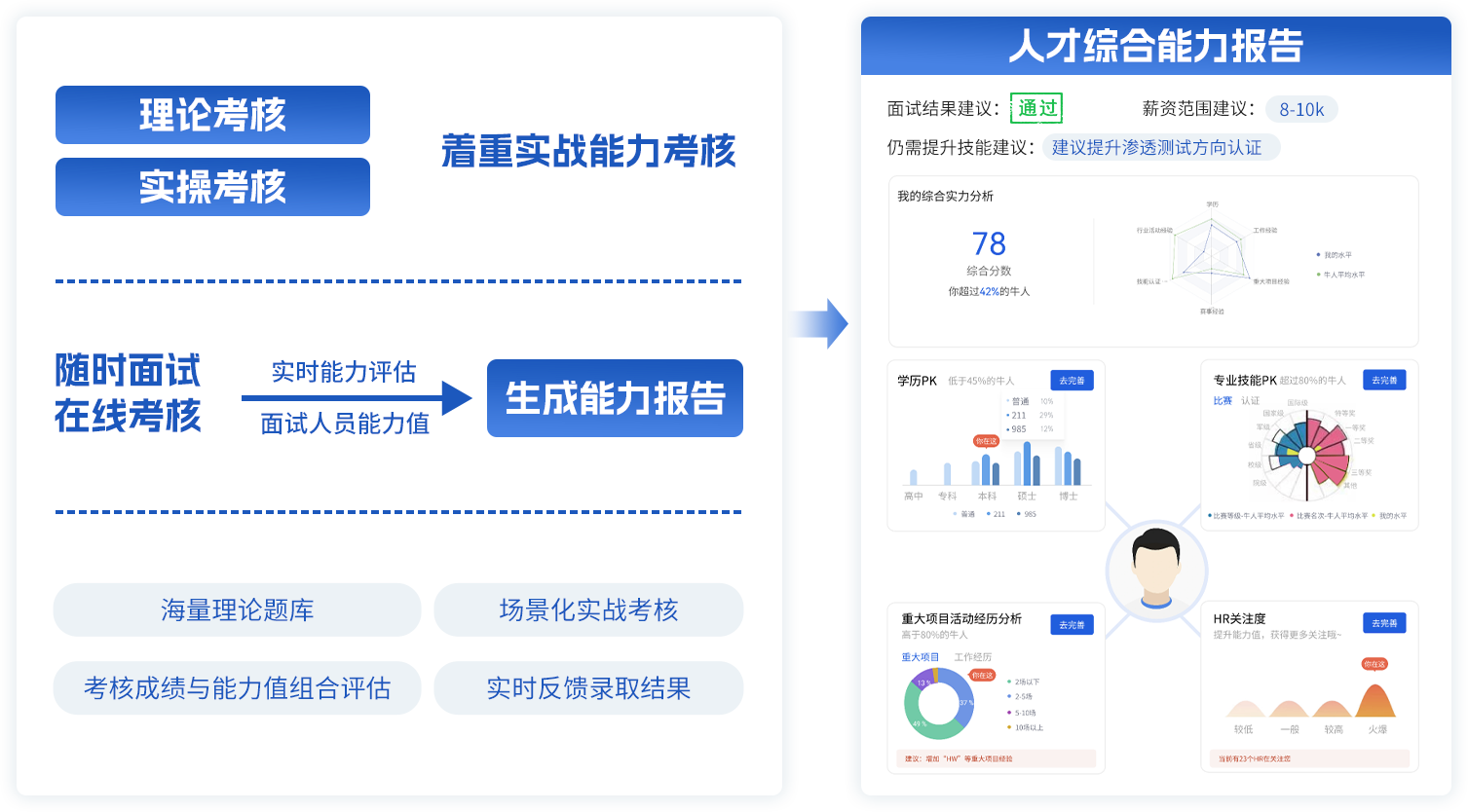综合报告:生成包含技术能力、实战经验的立体评估报告